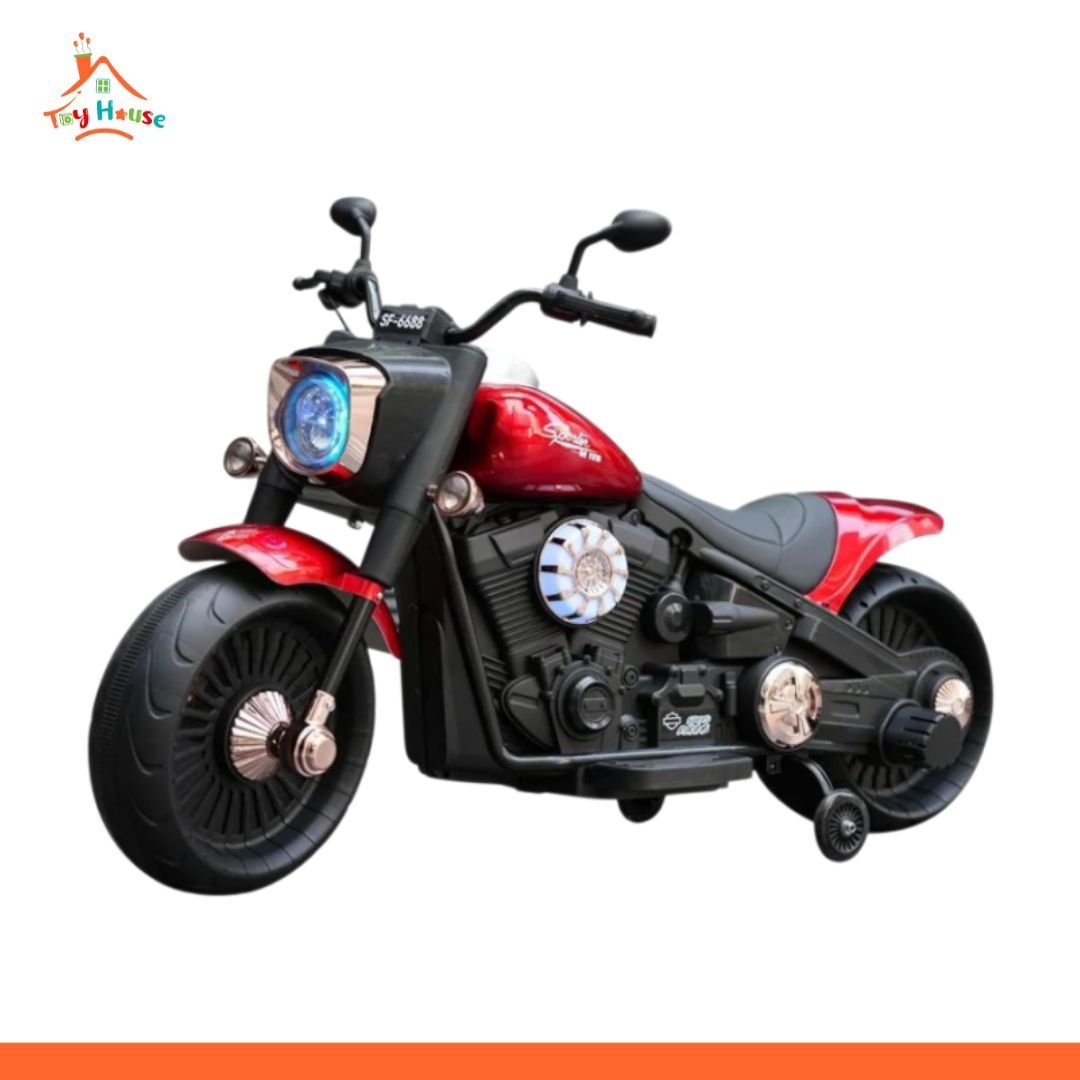 Give your child the ultimate riding experience with the Harley Davidson ZTN SF6688 Ride-On Electric Bike. Designed with a sleek urban street style and built for durability, this battery-powered motorcycle is perfect for adventurous kids aged 2 to 12 years. With a strong dual-engine system and high weight capacity of up to 100 kg, this ride-on bike combines power and safety in one stylish package. Its leather seat and metallic finish add a premium touch, while the built-in MP3 audio system makes every ride more fun. Whether it’s cruising around the yard or riding down the sidewalk, the SF6688 is sure to turn heads and bring smiles.