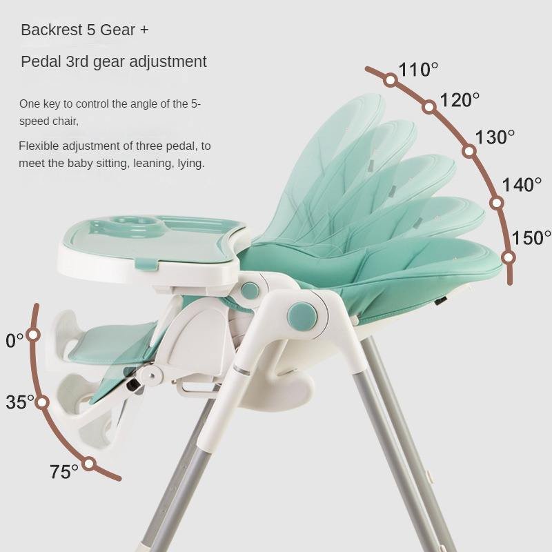 Crafted from high-quality, durable materials, this high chair is built to last. The removable tray is dishwasher-safe, making post-meal cleanup a breeze. With a five-point safety harness, your baby remains safe and secure at all times.